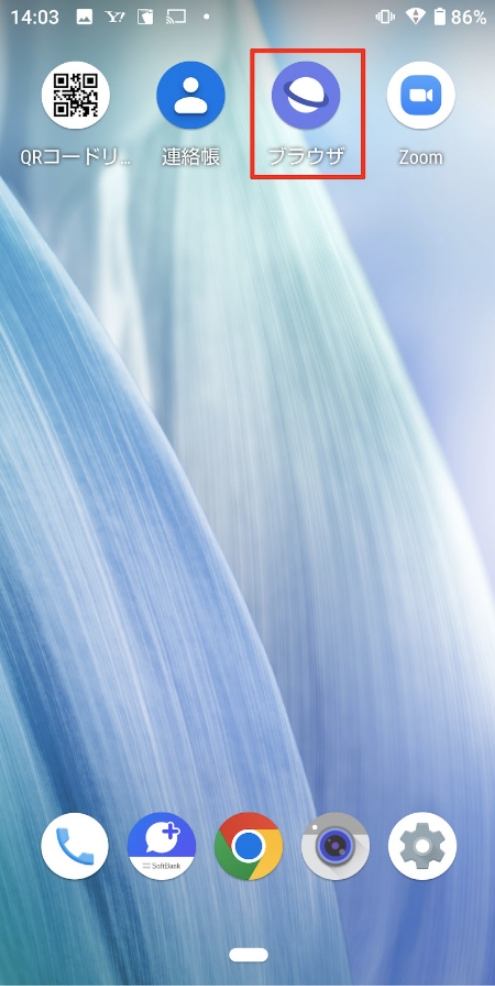 1.ホーム画面から「ブラウザ」をタップ