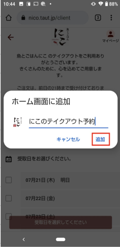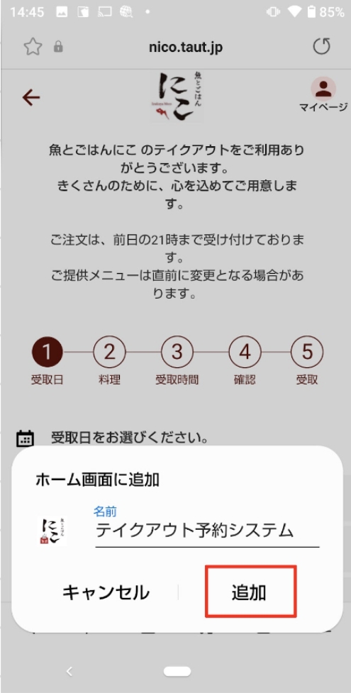 6.テイクアウト予約のアイコンがアプリ一覧に表示されます
