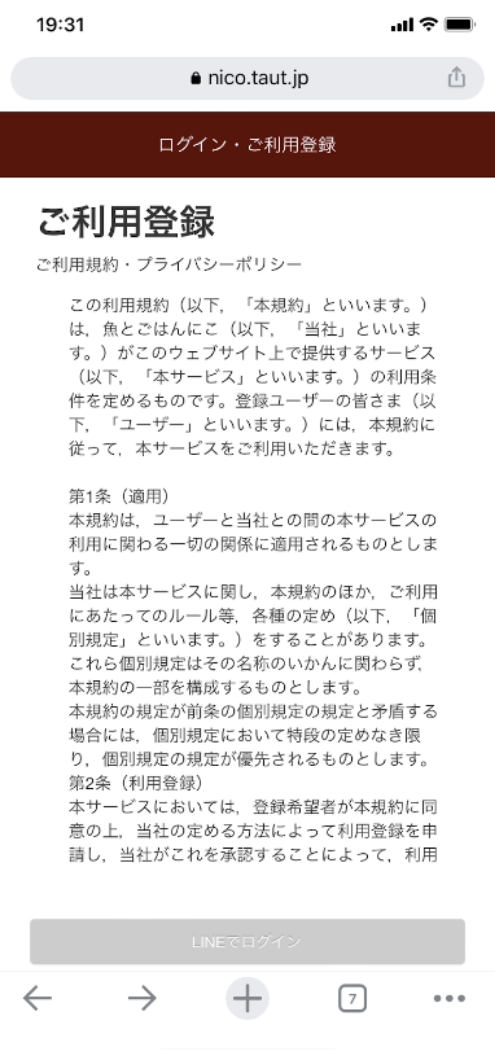 3.LINE上で表示されたTauT画面の右下の「デフォルトのブラウザで開く」をタップする