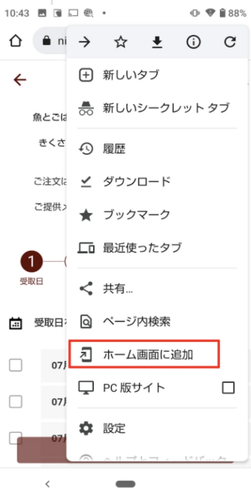 4.「ホーム画面に追加」をタップ