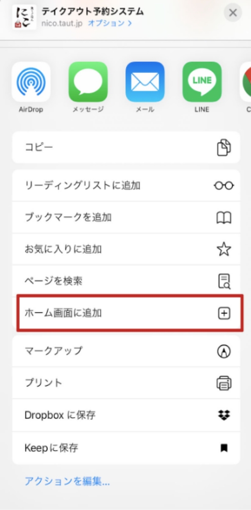 5.「ホーム画面に追加」をタップ
